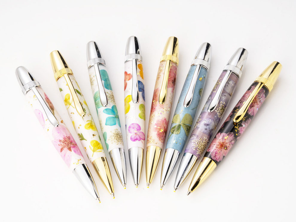 「お花を愛する方へ」日本の四季を届ける贈りもの 可愛い小花を氷のように閉じ込めた「Flower Pen」ギフトです。 ~大好きなお母さんに贈りたい~ 手元に置いていつも愛で、使って欲しい筆記具のご紹介です。お花の農家さんが、独自の栽培方法で花びらの色を付けることを可能とし、飛騨高山のお花屋さんが「押花シート」としての開発をしました。命あるお花は、枯れて茶色に変色してしまいます。その悲しい現実からお花の美しさを長く持続し楽しめる方法はないかと3年間、職人と共に考え抜いて完成した独自製法です。氷のように小花を閉じ込めた「Flower Pen」です。
