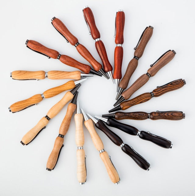 8Color Pen 厳選した銘木から削り出した 木目の美しいボールペン高級外車やクルーザーなどに使われる、8種類の厳選した世界の希少銘木より手作りました。和筆職人の遊び心から生まれた緩やかな曲線美を特長とし、流線型のデザインは手に馴染むように一本一本削りだしました。