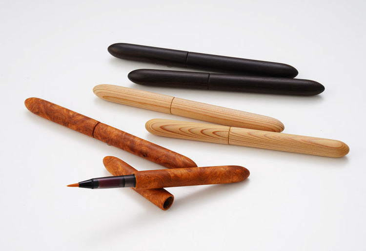 筆を使うのは年賀状に俳句や詩などだけでなく、昨今イラスト画家などが使いブームとなっています。他では買えない銘木材の筆ペン。