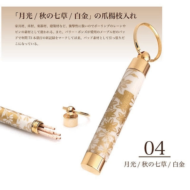 Traditional Mino Washi Yuzen Pattern Toothpick Holder/Toothpick Moonlight/Autumn Seven Herbs TM1800TM White x Gold