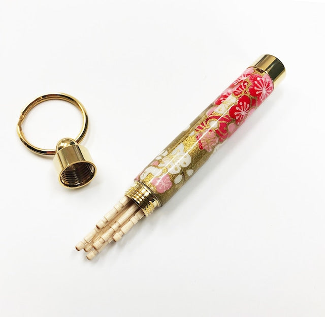 Traditional Mino Washi Yuzen Pattern Toothpick Holder/Toothpick Plum and Running Water TM1904 Red