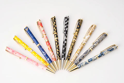 美濃和紙/友禅柄 折り紙や千代紙のような伝統的な素材を使用した、オンリーワンの高級ギフトです。桜や友禅柄など自然の美しさと美濃和紙の伝統工芸を組み合わせた、和柄の手作りボールペン・メタルペン・シャープペン・万年筆が人気。自然素材の持つ風合いや独自のデザインが魅力で一点一点が丁寧な手作りです。どのボールペンもハンドメイドで一点モノの魅力を持つ特別感。さくら・押し花・友禅柄がインスタ映えするのでイチ推し。成人式・父の日・母の日・就職祝い・敬老の日・誕生日プレゼントなど大切な方への贈り物や、ゴルフコンぺのノベルティーにおすすめ。映える・エモい・フォトジェニックな、珍しい手作り最高級の和紙小物。