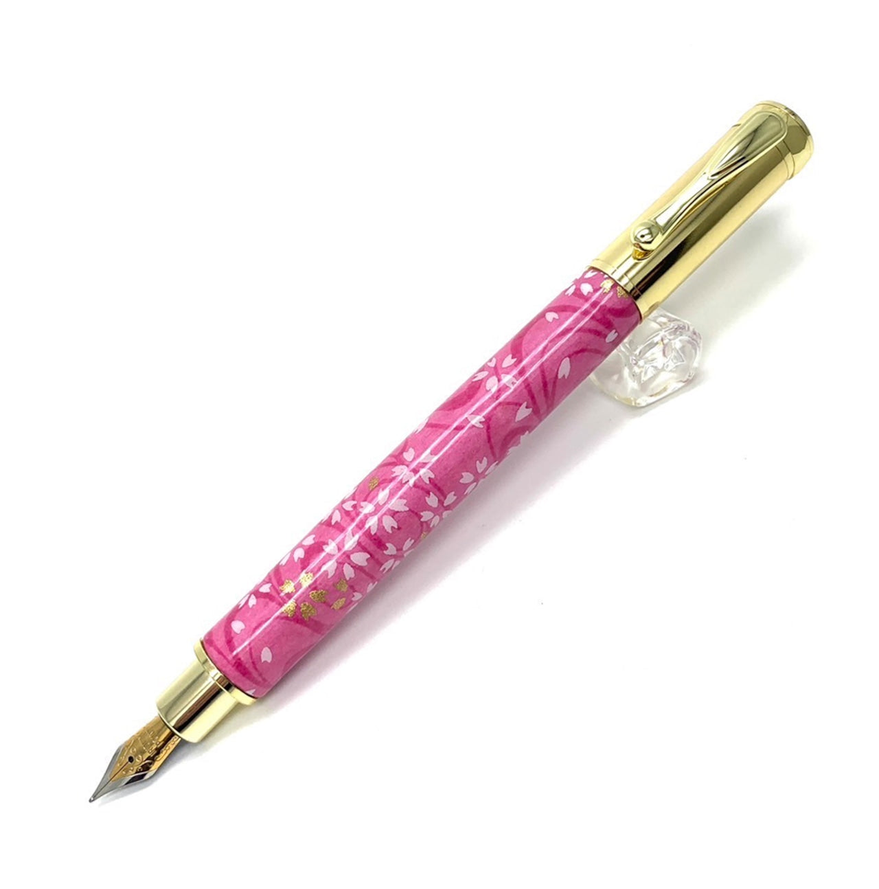 みやびな美濃和紙 友禅柄 MagnetCap式万年筆 小桜と流水/桃色 TWM2317