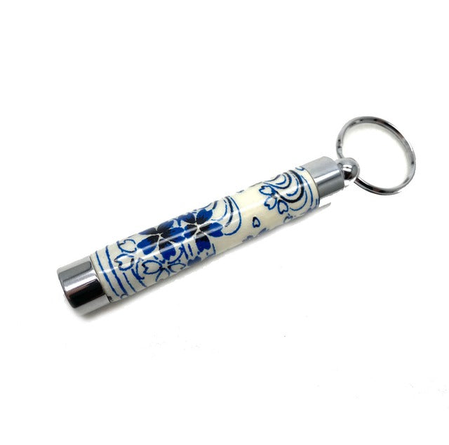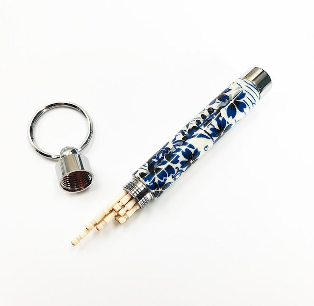 伝統の美濃和紙 友禅柄 爪楊枝入れ /つまようじ 藍染・流水桜 TM1811 白x紺色