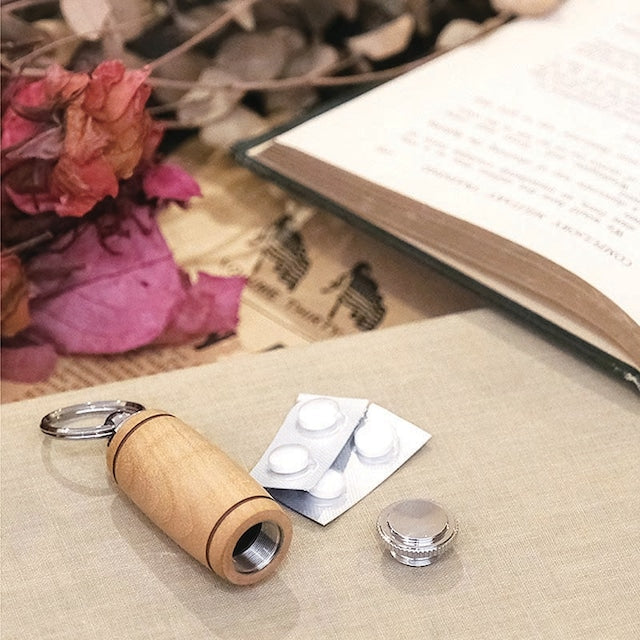 優しく温かみのある銘木の木肌が美しい、Woodピルケース/薬入れです。天然木の風合いを活かした、贅沢で上品なデザインが特徴的。手のひらサイズのコンパクトなサイズ感ながら、蓋を開けると便利な仕切り付きでお薬や小物を整理整頓できます。お子様の健康グッズや、旅行や外出時に必要な薬を収納するのに便利です。