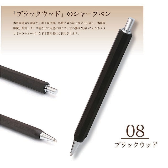 希少樹木 八角シャープペン /ブラックウッド TOW210 0.5mmノック式