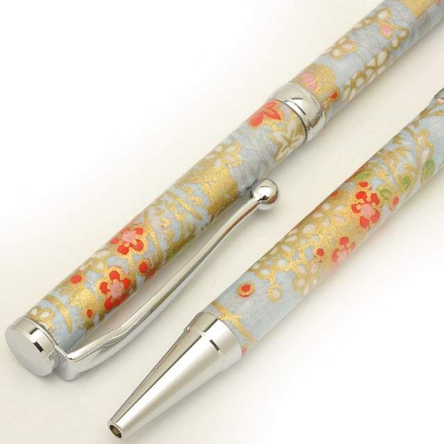 みやびな友禅柄は、和のテイストを感じさせる上品な印象です。細身のシャープな軸に、滑らかな書き味のクロスタイプ・ボールペンを装着。
