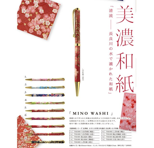 産地である岐阜県美濃地方で職人が手作りした和紙を使用した美濃和紙ボールペン。