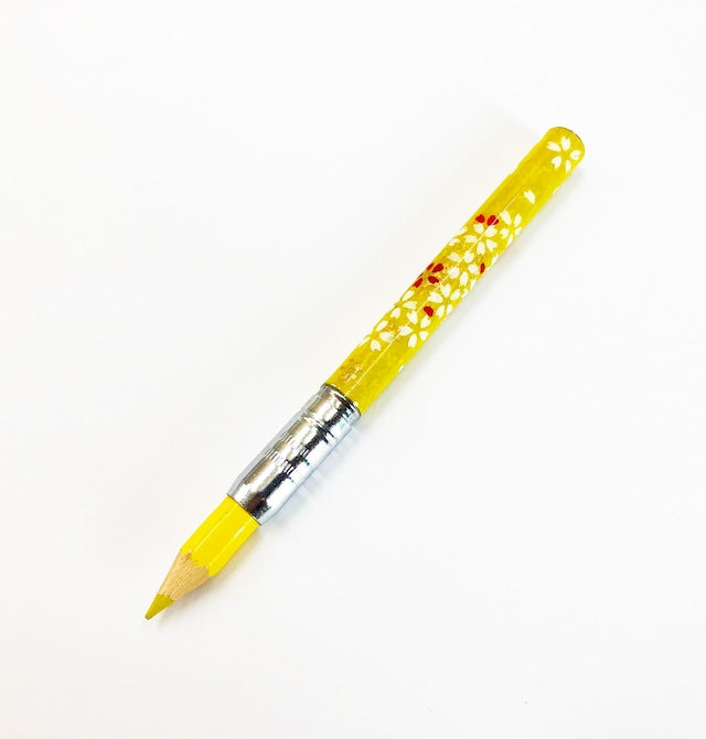美濃和紙 友禅柄 えんぴつ補助軸 /エクステンダー 桜と流水 TM1902 黄色