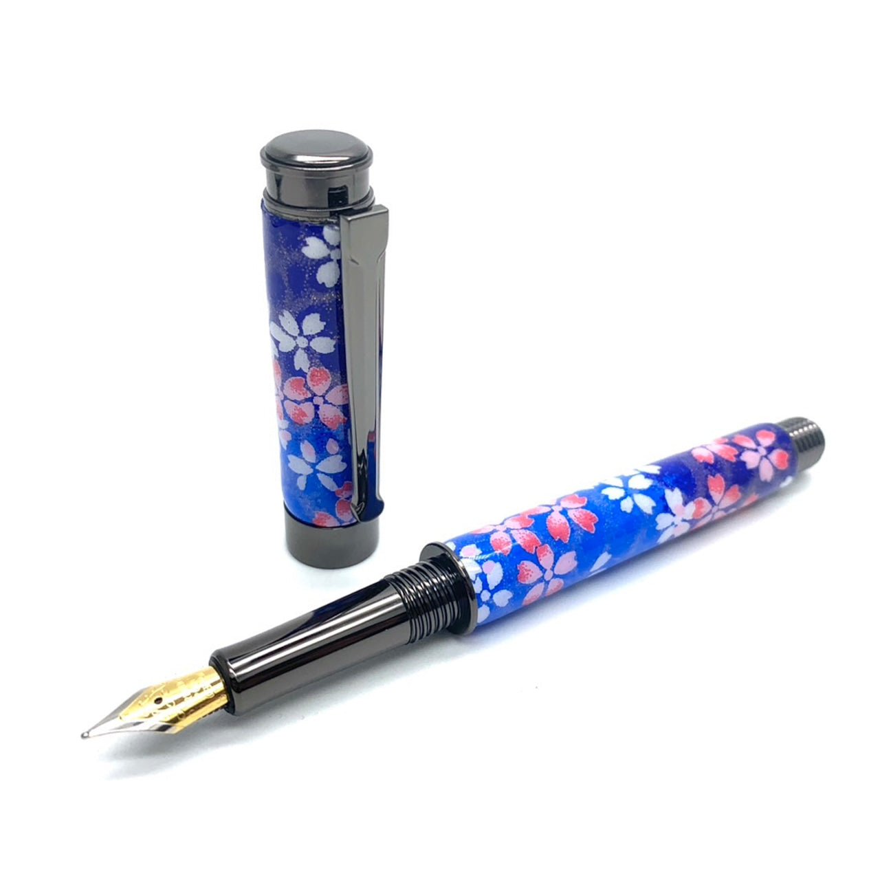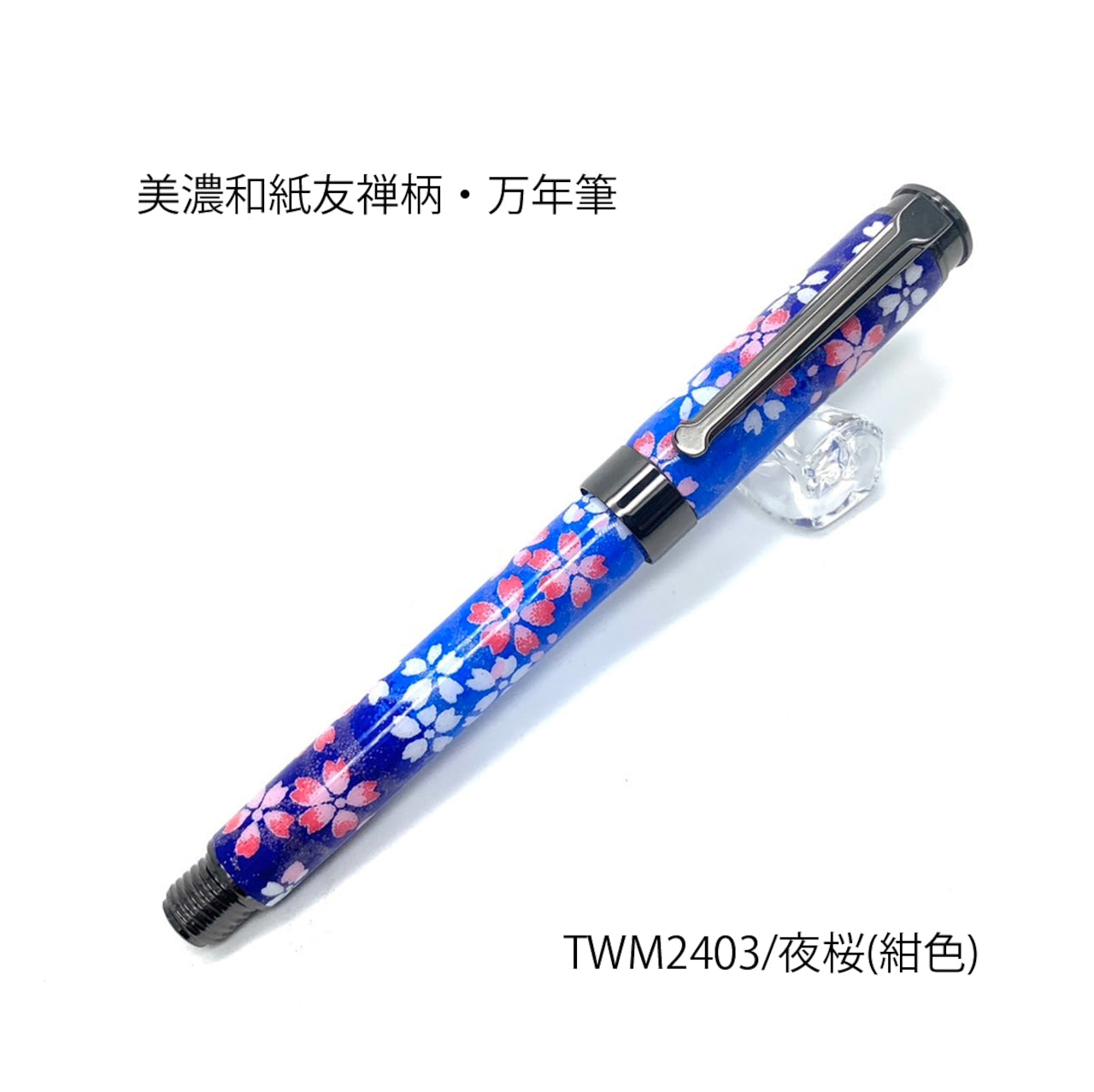 美濃和紙 友禅柄 万年筆 夜桜 /紺色 TWM2403 コンバータ付