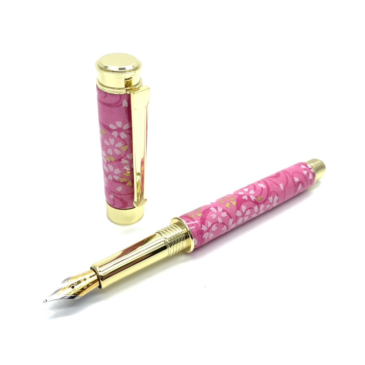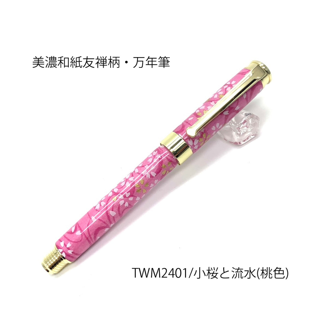 美濃和紙 友禅柄 万年筆 小桜と流水 /桃色 TWM2401 コンバータ付き