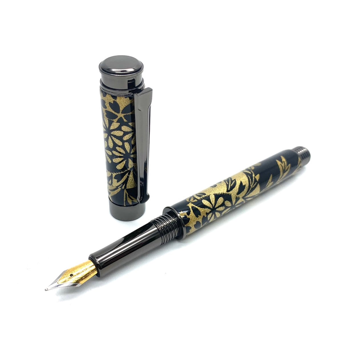 美濃和紙 友禅柄 万年筆 月光 /秋の七草 TWM1815 bk コンバータ付