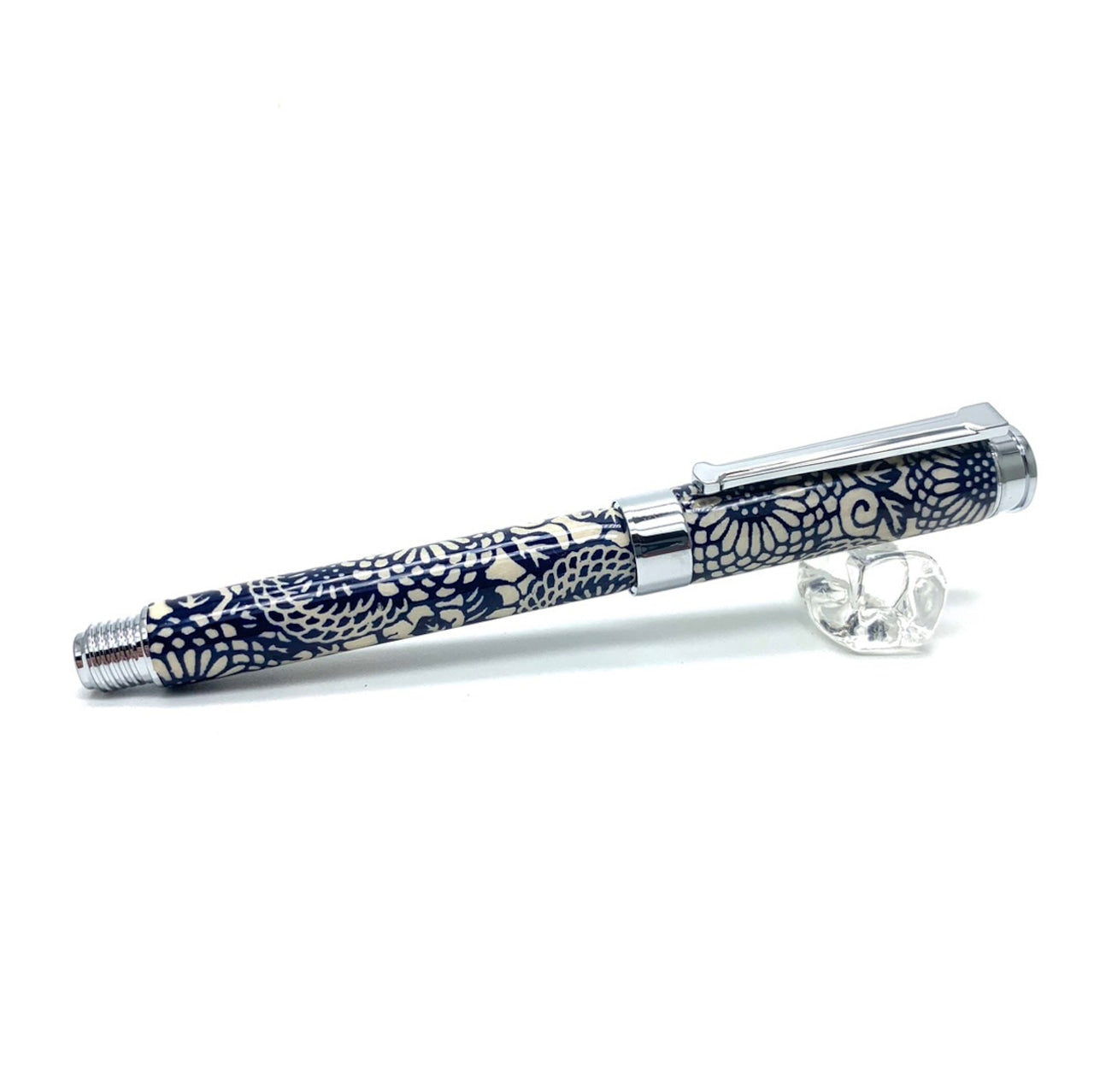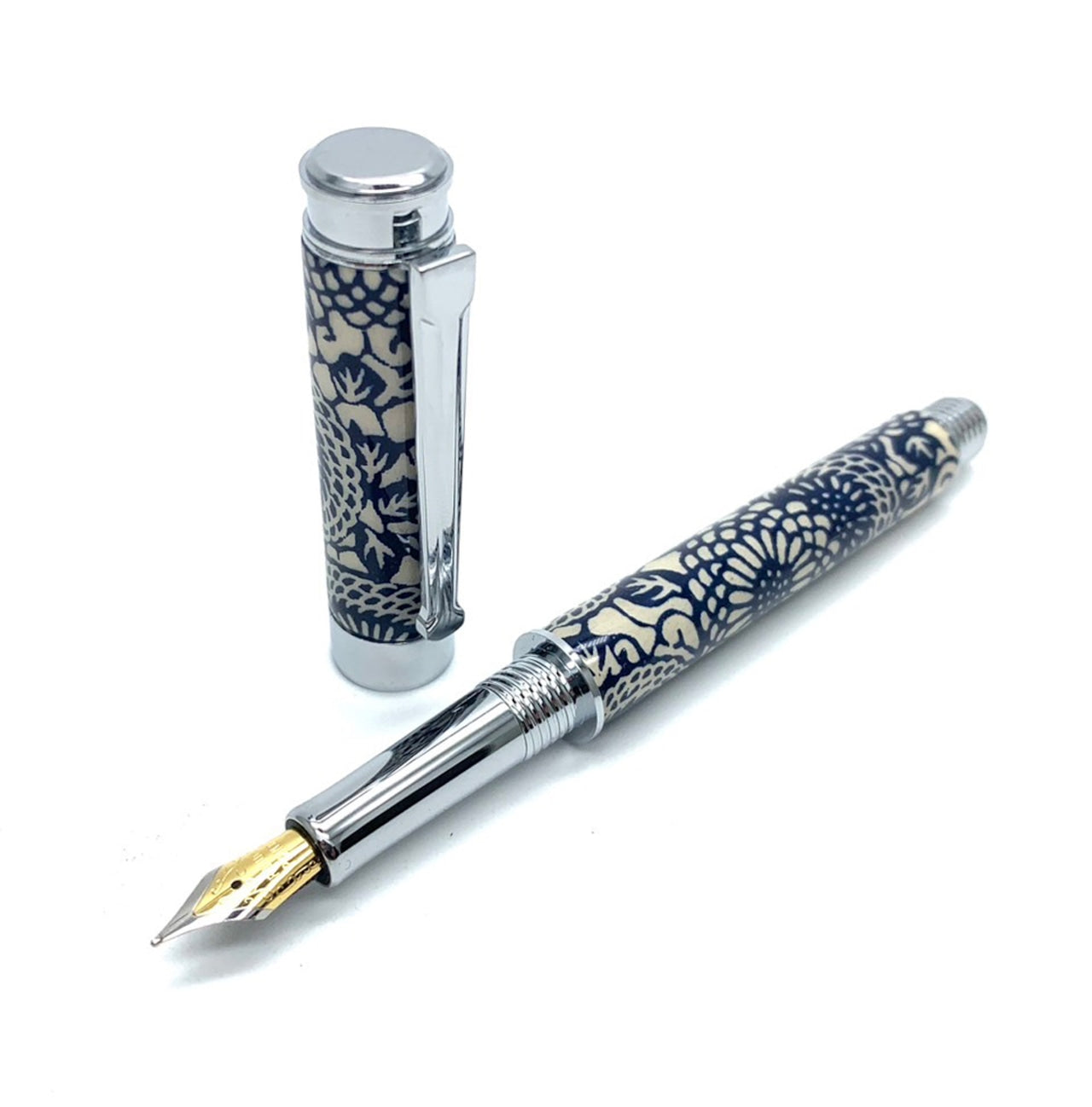 美濃和紙 友禅柄 万年筆 藍染あいぞめ /ぼたん TWM1610 コンバータ付
