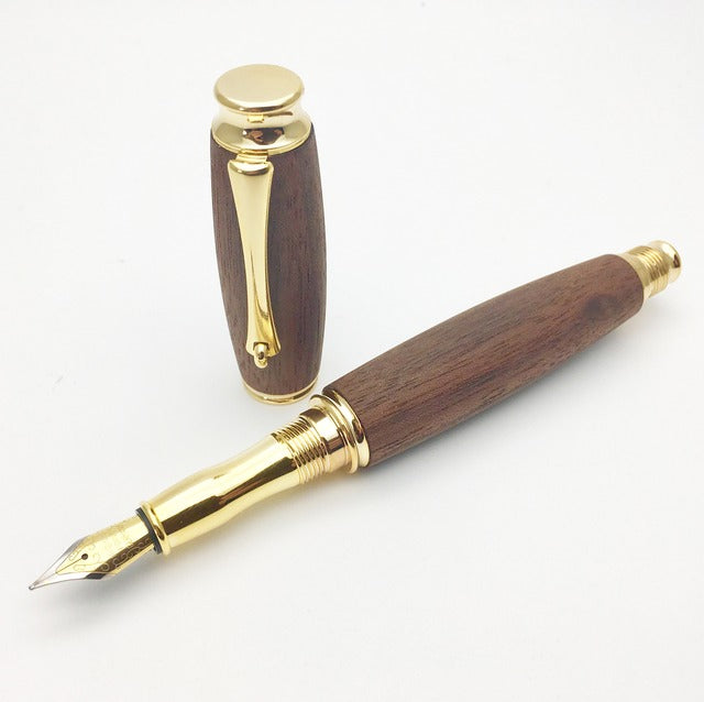 高級家具材として知られる銘木の天然木材を活かした万年筆です。木肌の温もりが感じられるオリジナル万年筆です。使うことで色ツヤが変わり経年変化を楽しんでもらえ、この世で1本の自分だけのオンリーワン筆記具となります。Pen先金具は世界の人に愛されるドイツ(DAYACOM社製・合金)中字を使用しており、コンバーター(内蔵)とカートリッジは交換可能です。