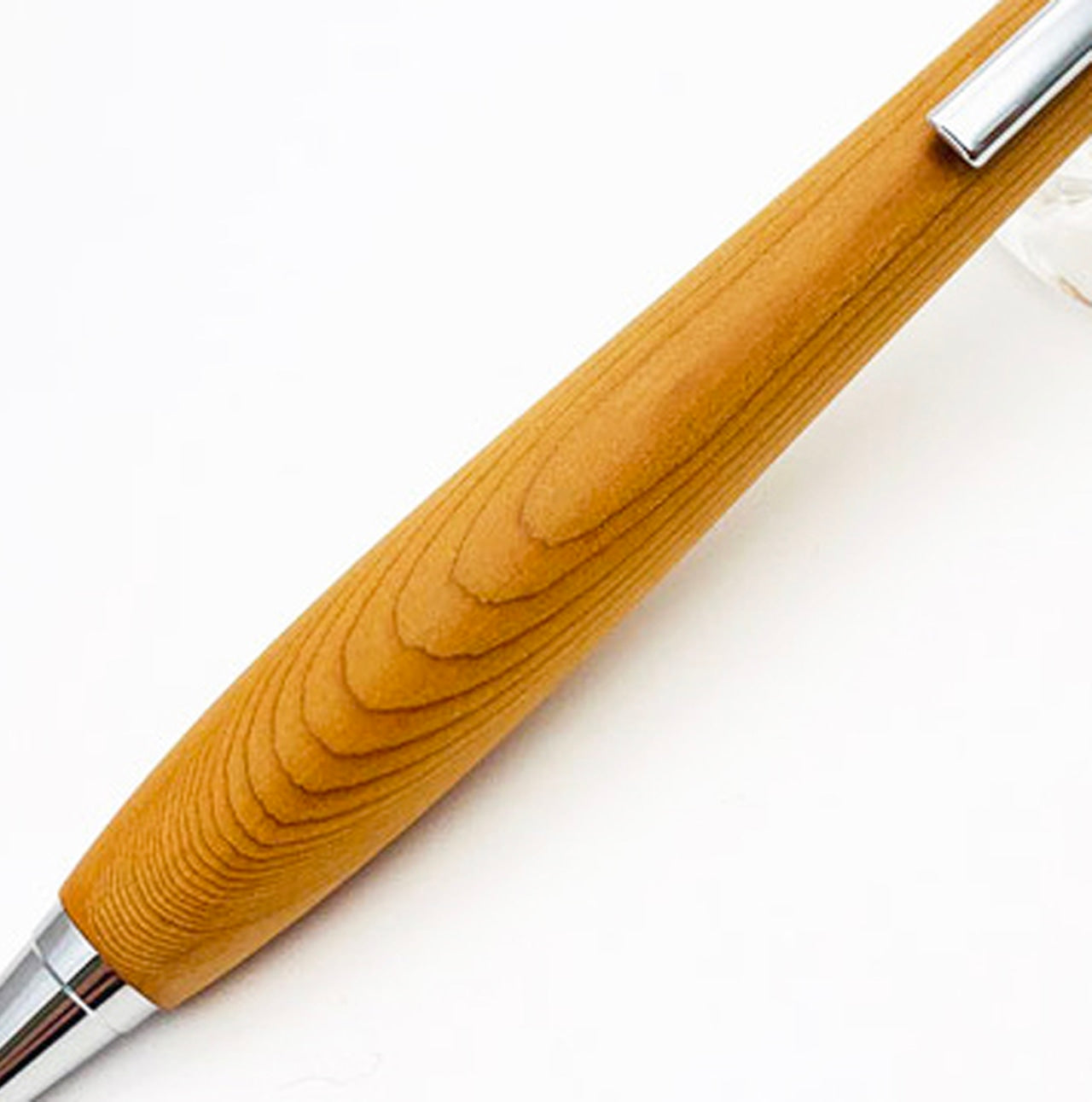 流線形のフォルムはPen先重心で使用バランスが良く、長く使っても疲れにくい独自設計の形状が特徴です。自然の恵みである天然木材の中でも希少木にこだわり削り出しており、木肌の温もりを感じるデザインの筆記具です。何時までも一緒にいたい一品です。