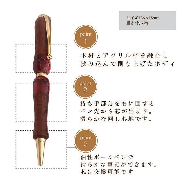木材とアクリル材を融合し挟み込んで削り上げた、樹種に合わせてテーマを持つ手づくりならではの魅力あるデザインです。