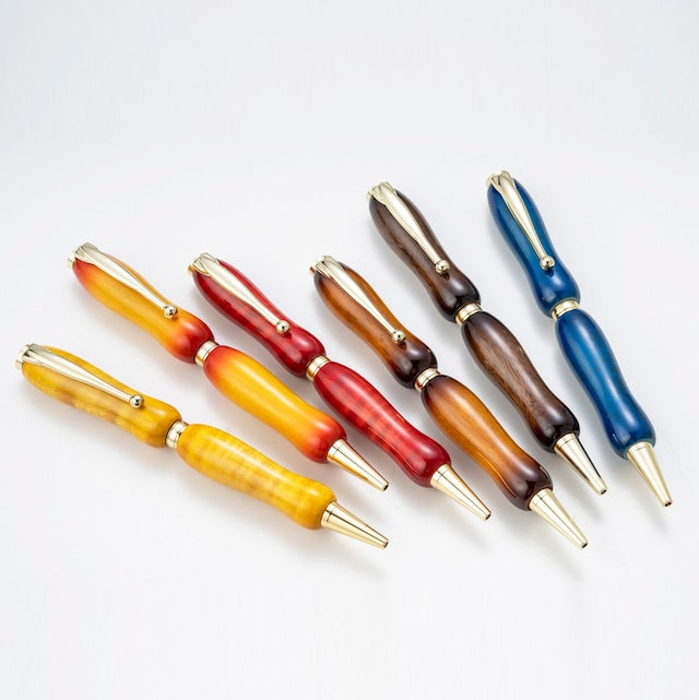 天然木にウレタン塗装をエアーブラシで吹き付けた楽器ようなボールペン。