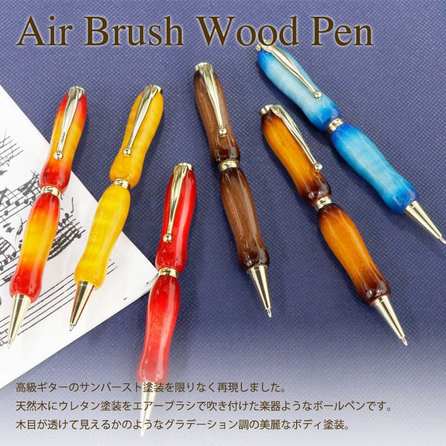 天然木にウレタン塗装をエアーブラシで吹き付けた楽器ようなボールペン。