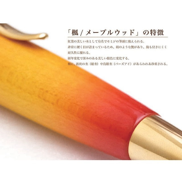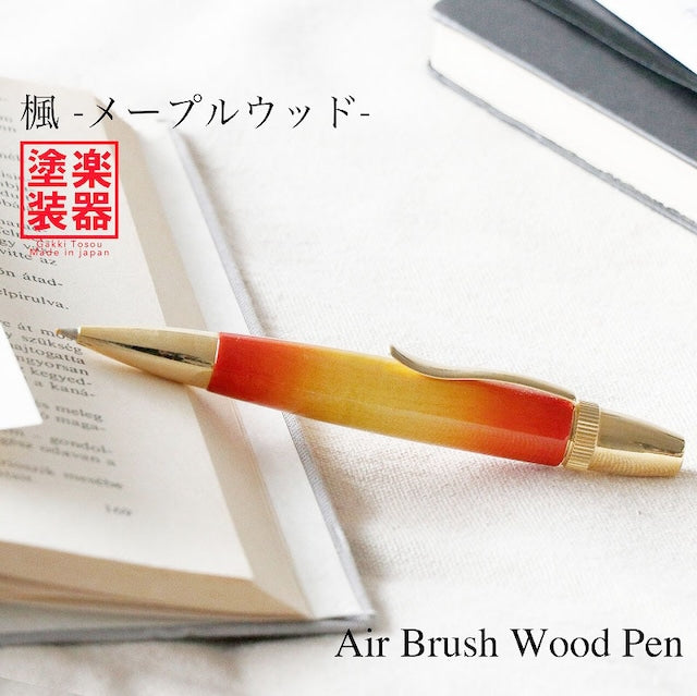 天然木にウレタン塗装をエアーブラシで吹き付けた楽器ようなボールペン。