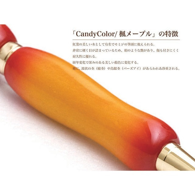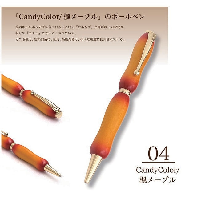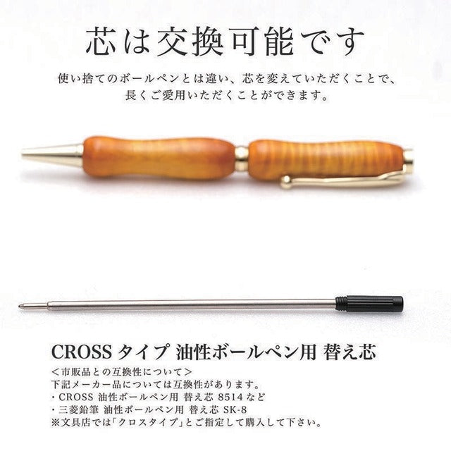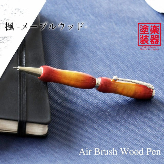 天然木にウレタン塗装をエアーブラシで吹き付けた楽器ようなボールペン。