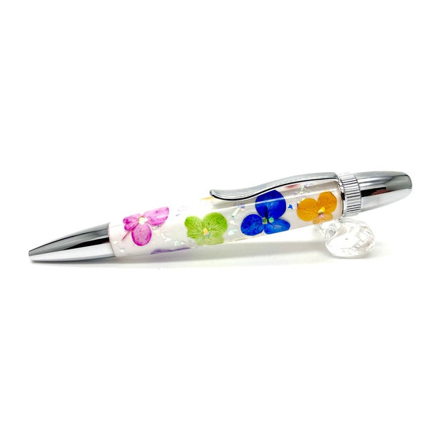 氷のように小花を閉じ込めた「Flower Pen」です。
